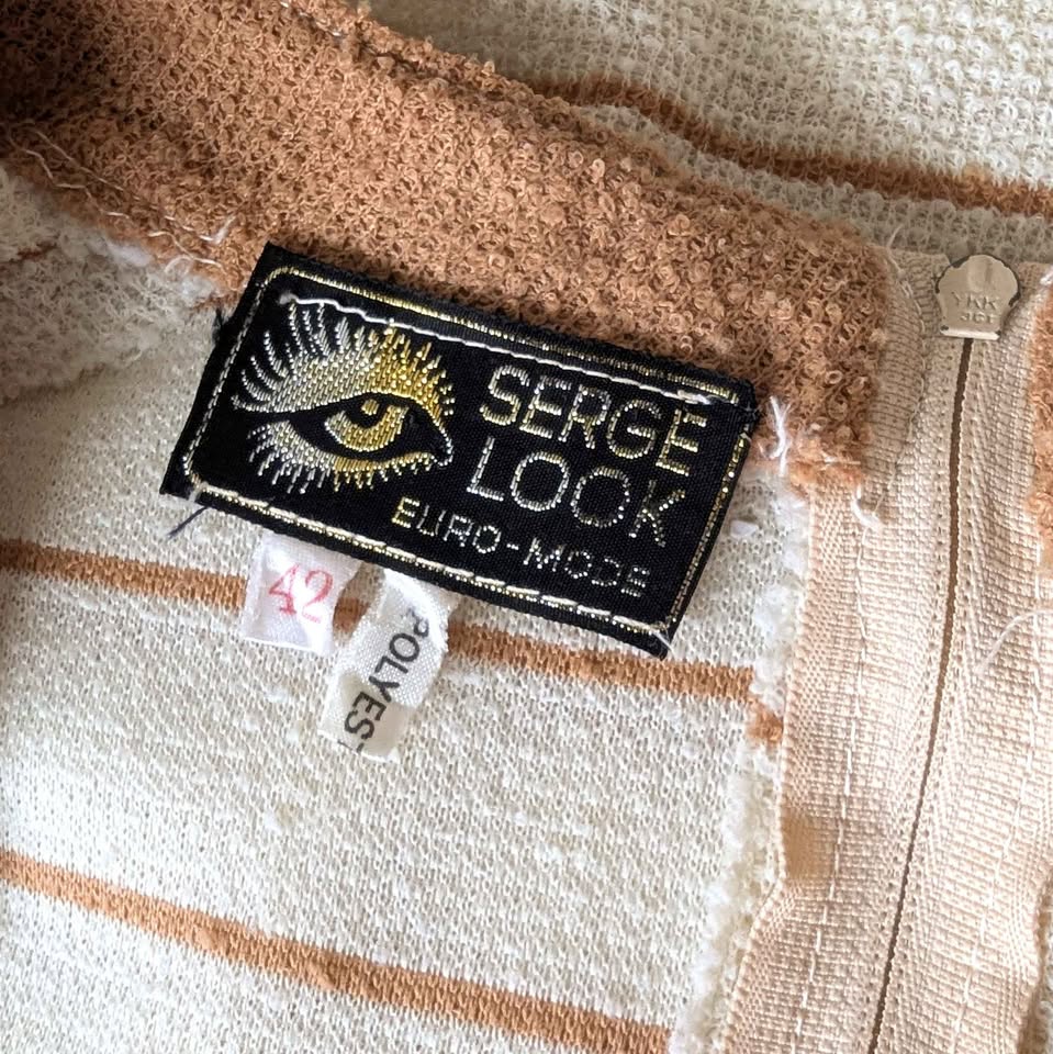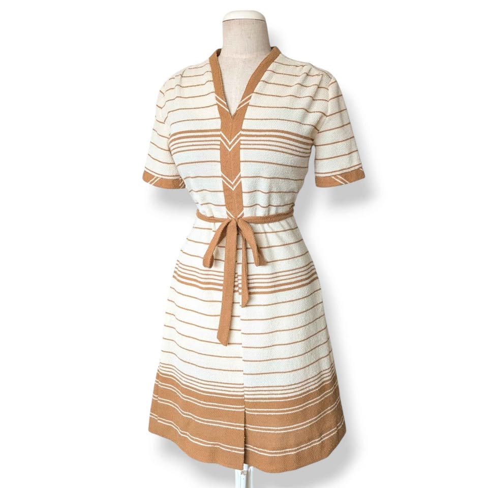 1970s Vintage Tan Striped Terry Toweling Day Dress