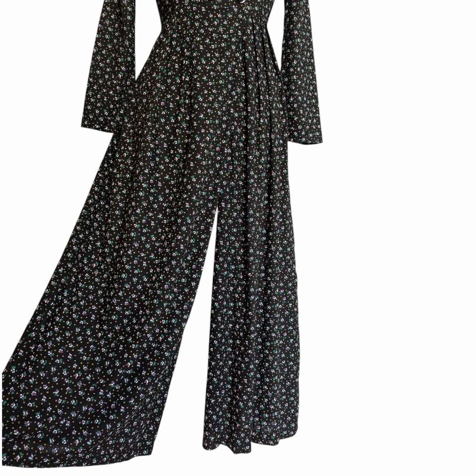 Gorgeous 80's vintage cotton blend floral fabric with a pleated waistline and flowy wide leg fit. Has shoulders pads, but I can easily remove them for you on request! Good condition.