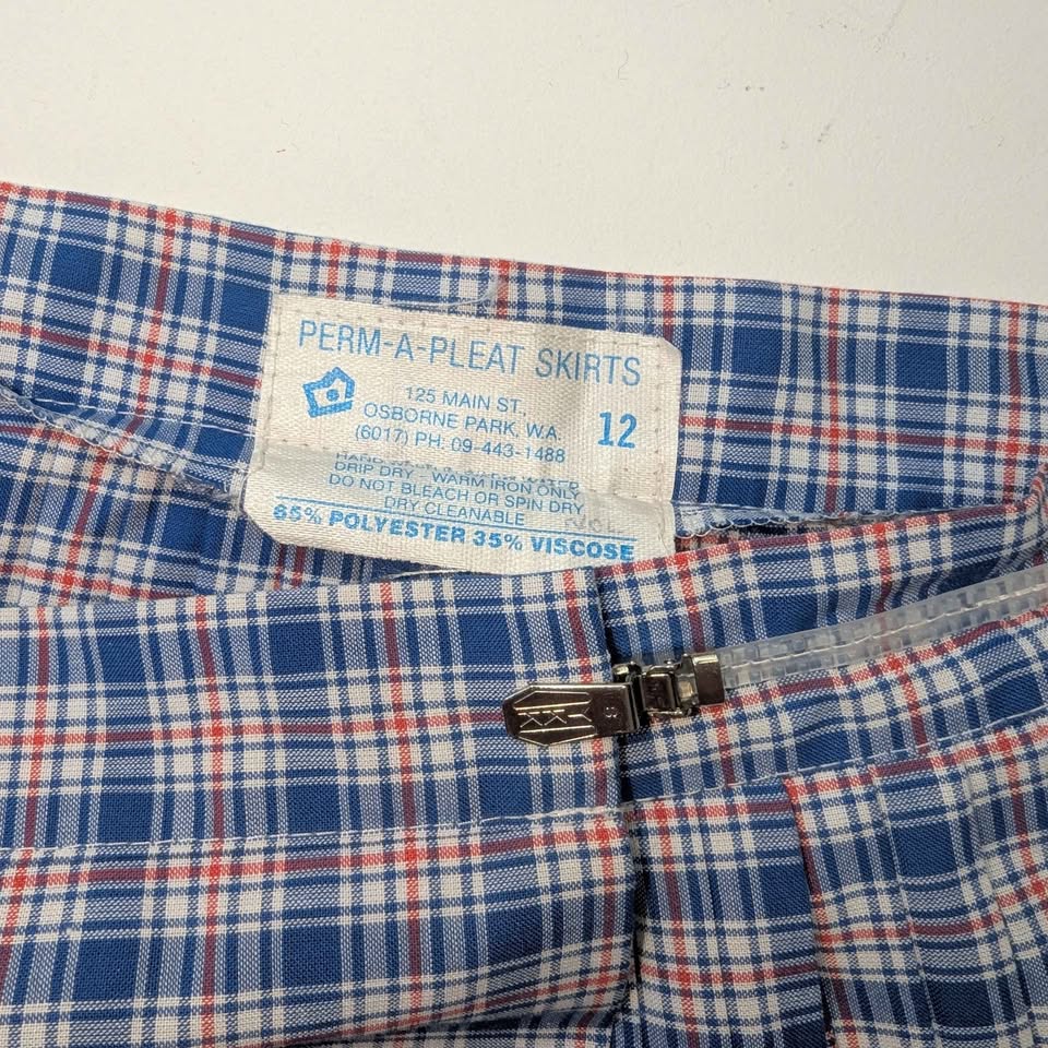 Super cute 80s vintage blue plaid uniform mini skirt! Adjustable waist - fits a 24" - 28" waist!