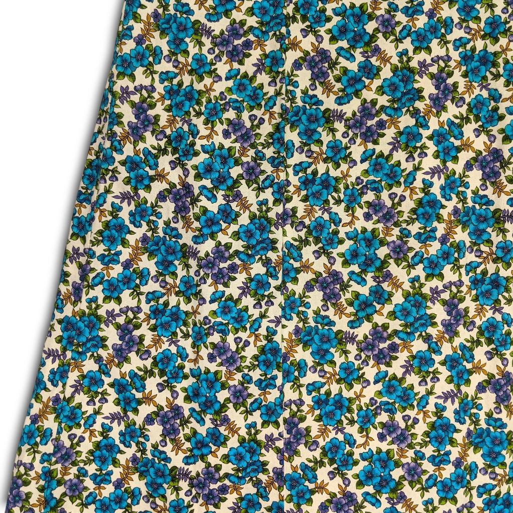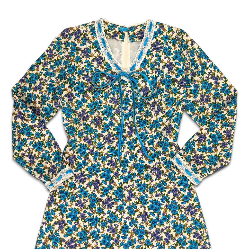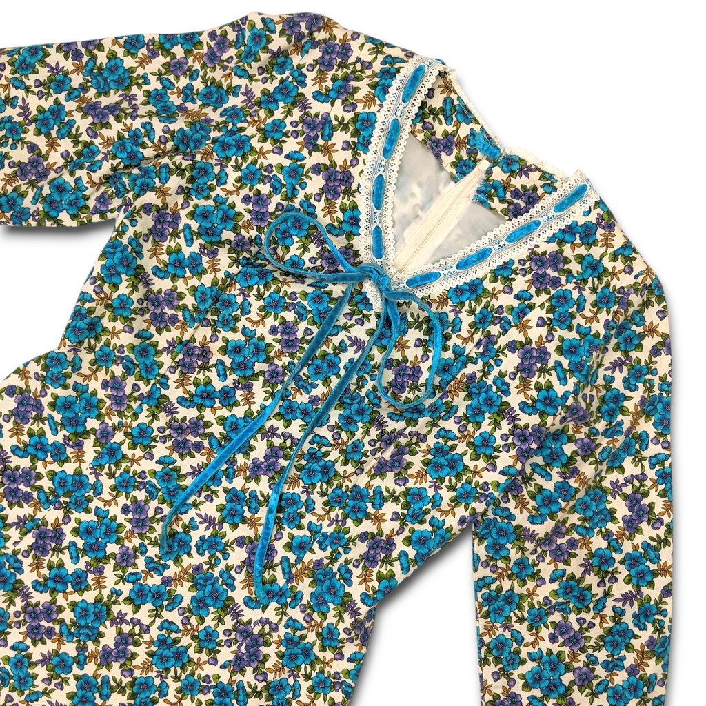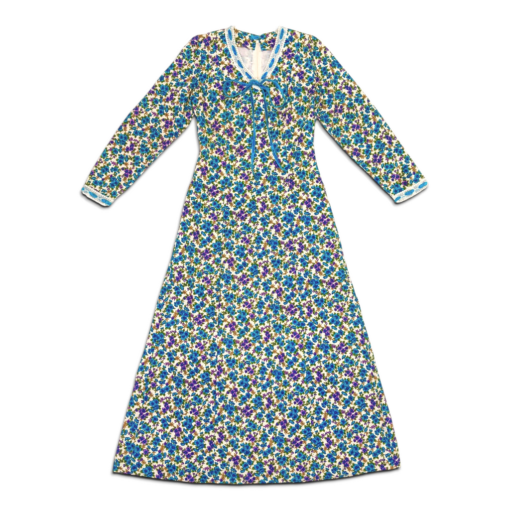 1970s Vintage Blue and Purple Floral Maxi Dress